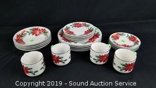 Lot #0047: Totally Today 20pc. Poinsettia Print Dish Set