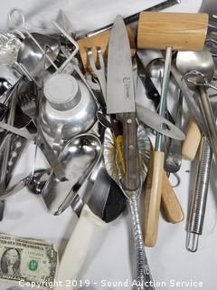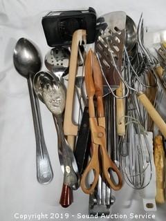 Lot #0241: Tote Loaded w/Restaurant & Kitchen Utensils