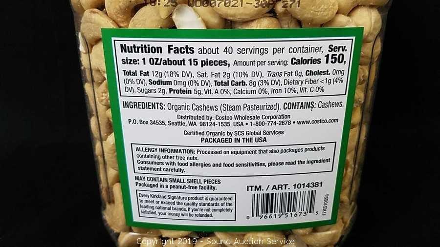 Lot #0343: 2lbs 8oz Kirkland Organic Whole Cashews