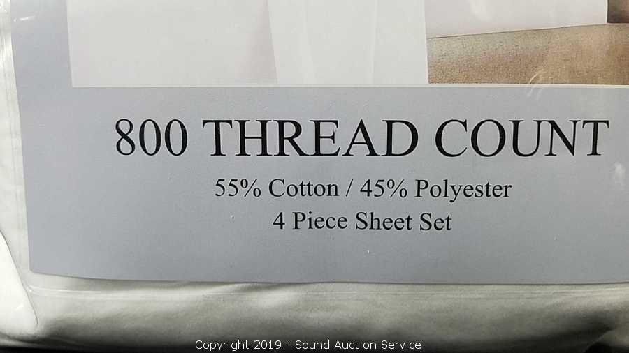 55% cotton, 45% polyester. 1 flat, 1 fitted, 2 pillowcases. Look like they have been used, no issues.