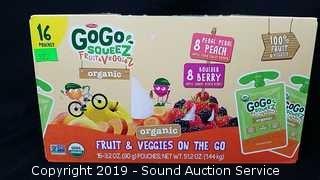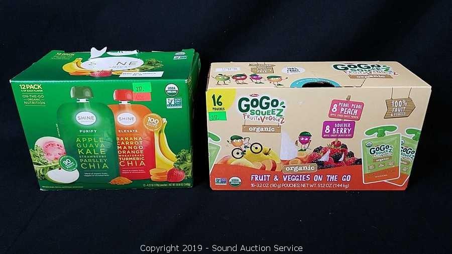Includes: 9pk Go Go Squeeze Peach & Berry Fruit & Veggie Organic Pouches, and 10pk Shine Organics Pouches (Refer to photos for flavors).