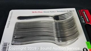 Each pack is 36ct. Stainless steel. Packages have been opened, like new. Commercial grade. Forks are dinner forks.