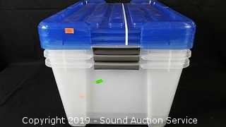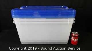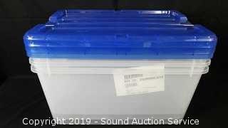 Lot #0160: (3) 45 Quart Clear Plastic Totes w/ Lids