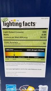Brushed patina finish with clear water glass. Photocell. Only uses 9w, 3000k color. 11.3" x 8.4". Complete, like new, works.