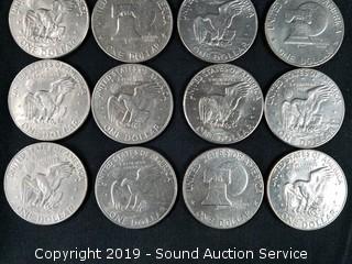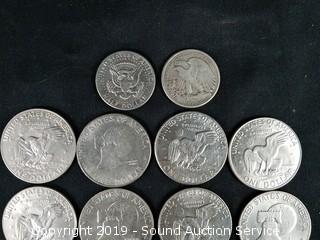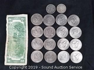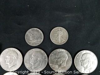 Includes: 16 Eisenhower Dollars (Appear to be from the 70's), 1971 Kennedy Half Dollar, 1943 Silver Walking Liberty, and 2009 $2 Note.