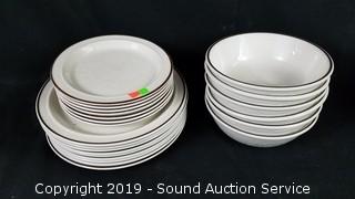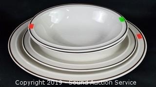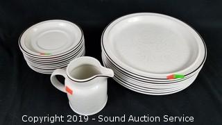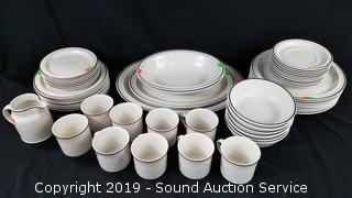 Includes: 8 Cups, 6 Bowls, 8 Dinner Plates, 9 Salad Plates, 10 Saucers, 7 Snack Plates, (2) 11" Oval Serving Bowls, 13" and 16" Serving Platters.