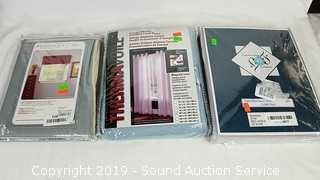 All are NIP. Includes: 1 Solid Blackout Grommet Panel Curtain 50" x 84" Grey, 1 Insulated Lined Grommet Panel Sheer 63" x 104" Aqua, and 1 Lined Straighted Valance 18" x 54" Emmett Silver.