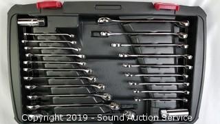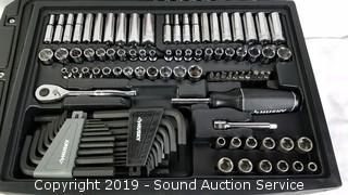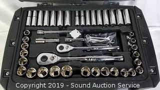 1/4", 3/8" and 1/2" drive. Complete, like new condition.