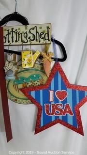 Includes: Candles, candle holders, basket, teddy bear, wall decor, signs, and more.