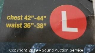 Chest 42-44". Waist 36-38". Comes in original packaging, complete.