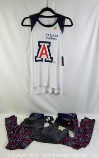 Includes: Arizona Wild Cats Shirt, Washington Huskies Leggings, and 2 Pairs of NFL Team Apparel Patriots Leggings.