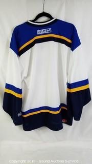 Includes: St. Louis Blues Jersey - Large, and Norfolk Admirals Jersey - Medium.
