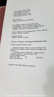 Statues have a precious moments makers mark on the back bottom dated 1998, book is the 5th printing dated 1989.