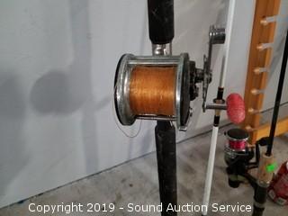 Includes: Fishing Pole Rack, Shakespeare Alpha Rod (Medium action 10-25lbs line) with Penn 65 Long Beach Reel, and a St. Croix 5ft Ultra Light Medium Action Graphite Spinning Rod with Master Graphite Reel.