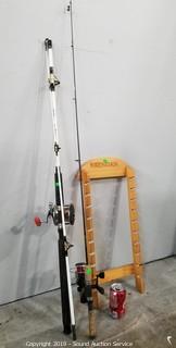 Lot #0044: Shakespeare 7ft Rod w/Penn Reel & Other w/Rack