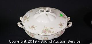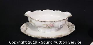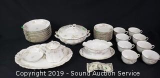 Includes: 8 Cups, 10 Saucers, Gravy Boat, 8" Covered Serving Bowl, 10" Platter, (11) 8" Bowls, Sugar Dish & 5" Bowl.