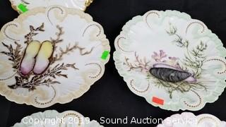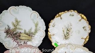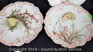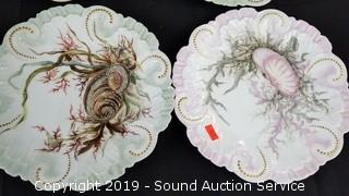 All are hand painted with shellfish. All are signed "Elm" on the bottoms. Made in France.
