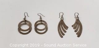 Lot #0388: 2 Pairs Hand Hammered Sterling Layered Earrings