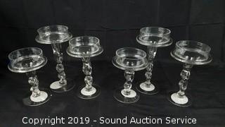 Lot #0253: (2) Sets of 3 Glass Twisted Base Candle Holders