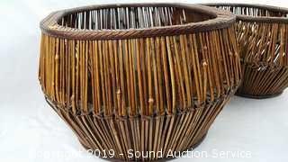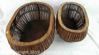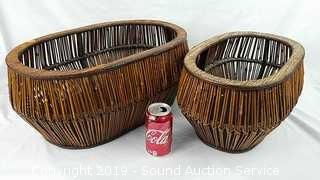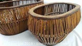 Lot #0248: 2 Unique Wicker Woven Baskets & Wood Crate