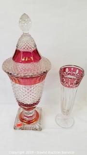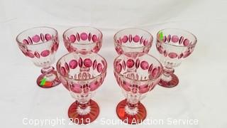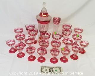 Lot #0104: 24pc. Vtg. Ruby Flash Thumb Print Glassware