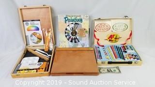 Lot #0077: 3 Painting Kits & Folding Art Easel