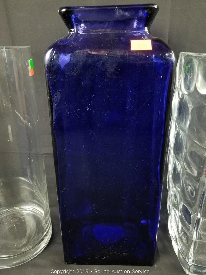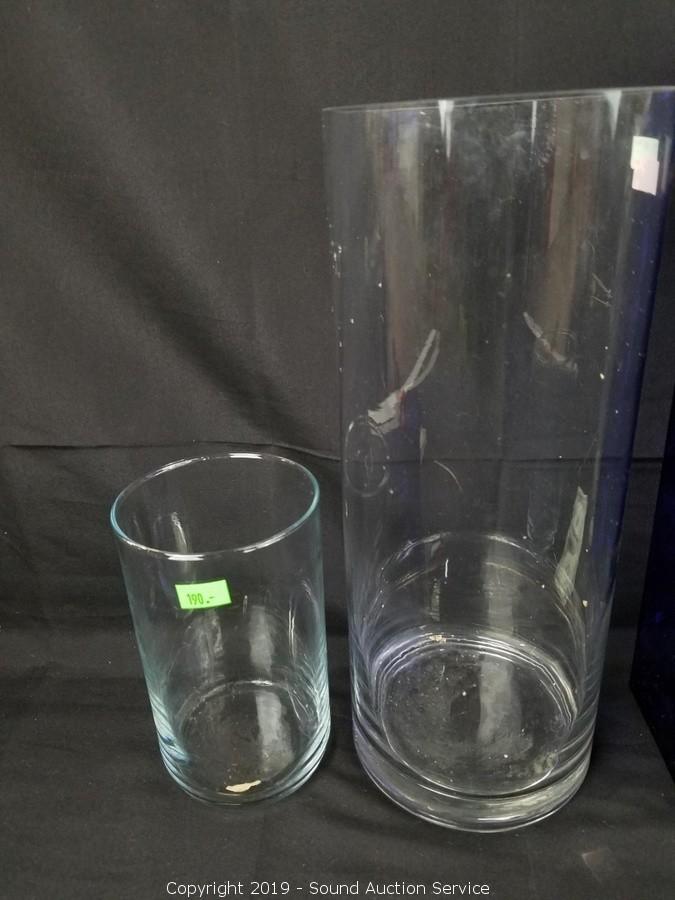 Includes: Crackle glass, bubble glass, cobalt blue, and 2 cylinder. Approx. 6" to 13" H.