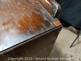 This auction consists of variety of Antiques & Collectibles. Including: Massive Vtg. Butcher Block, Some Great Artist Signed Prints & Door, Antique Buffets, Franciscan Ware Dishes, Native & Other Sterling Jewelry, Collectible Coins & Currency, Ethan Allen Dining Set, Blue Willow Ware China, Vtg. Dining Table, Huge Terracotta Pot, Granite Bar, Wooden Chests, Vtg. Silvertone Accordion, Kitchen Cart, Fire & Mold Guard Sheetrock, Antique Asian Storage Chest, Vtg. Mid-Century Sleigh Rocker Lounger, Wrought Iron Stools, Antique Topper, Antique Kroehler Rocking Chair, Rolex Oyster Original Box, Religious Décor & Literature, Collectible Trinkets & Much, Much More!
