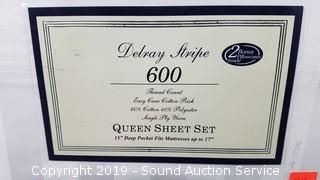 Lot #0273: Delray Striped 600TC 6pc. Queen Sheet Set & Throw