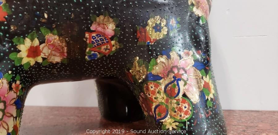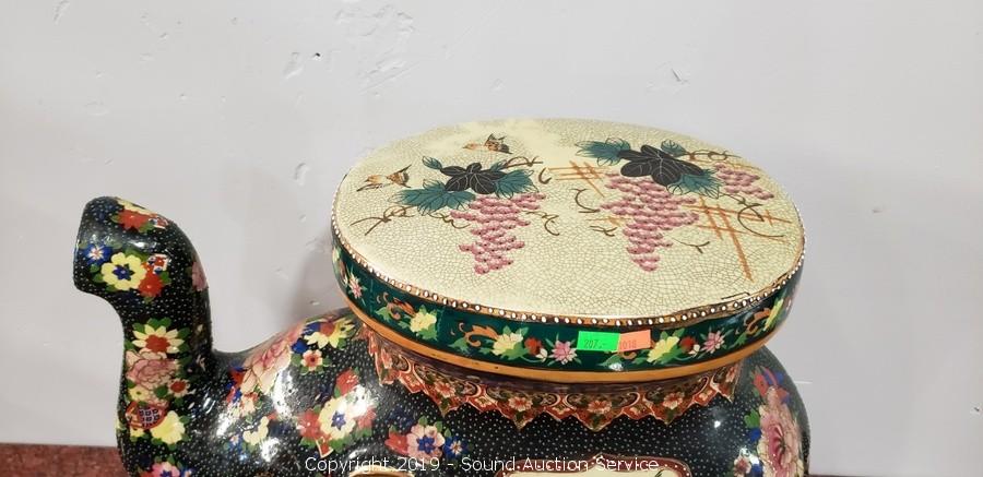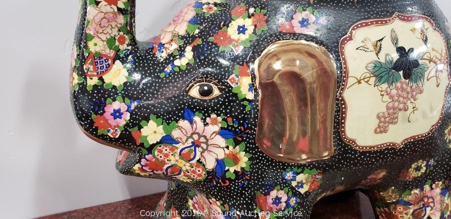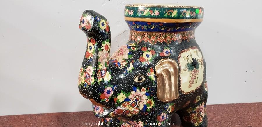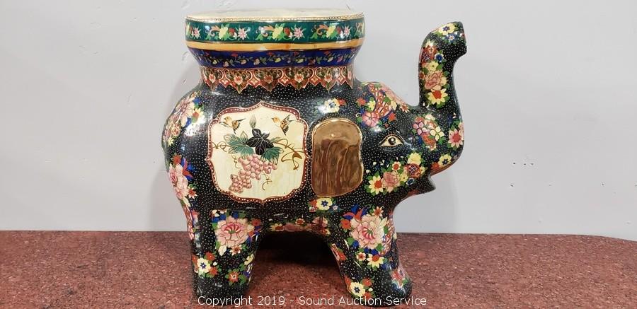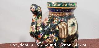 Lot #0207: Hand Painted 18" Ceramic Elephant Table