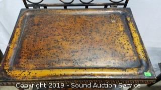 This auction consists of variety of Antiques & Collectibles. Including: Massive Vtg. Butcher Block, Some Great Artist Signed Prints & Door, Antique Buffets, Franciscan Ware Dishes, Native & Other Sterling Jewelry, Collectible Coins & Currency, Ethan Allen Dining Set, Blue Willow Ware China, Vtg. Dining Table, Huge Terracotta Pot, Granite Bar, Wooden Chests, Vtg. Silvertone Accordion, Kitchen Cart, Fire & Mold Guard Sheetrock, Antique Asian Storage Chest, Vtg. Mid-Century Sleigh Rocker Lounger, Wrought Iron Stools, Antique Topper, Antique Kroehler Rocking Chair, Rolex Oyster Original Box, Religious Décor & Literature, Collectible Trinkets & Much, Much More!