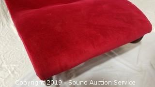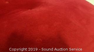 Pinkish red fabric. Missing 2 buttons, has a couple small tears in the fabric and a couple minor spots. Approx. 29" H, 35" W, 57" L.
