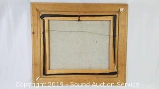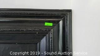 Black finish wooden frame. Overall approx. 31" x 27". Fits 24" x 30" piece of artwork. Signed "Nioel?"
