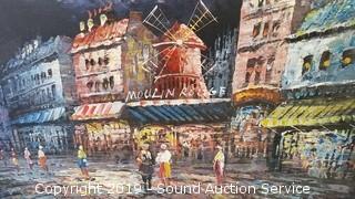 Lot #0054: Original Oil on Canvas Moulin Rouge Artwork
