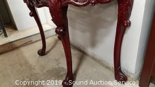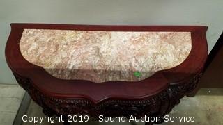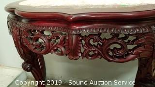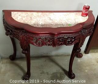 Lot #0034: Ornate Asian Style Mahogany Marble Top Hall Table