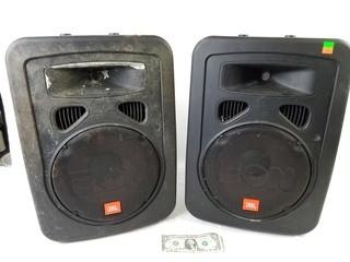 Both power on. Takes a standard computer style power plug, does not come with one. Model JBL EON10 G2. One looks to be in good condition, other looks heavily weathered. Approx. 19.5" x 13.5" x 12".