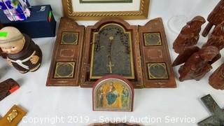 Lot #0315: Religious Decor & Carved Wooden Nativity Scene