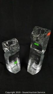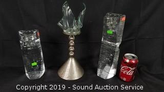 Lot #0252: Set of 3 Art Glass Candle Holders