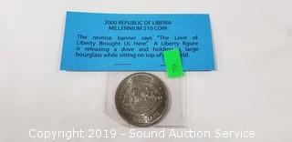 Includes: 2000 Republic of Liberia Millennium $10 Coin, 1962 Old Mexican Silver Dollar, and various others. ATTN: We are not coin experts or graders, please use your own judgement when bidding.