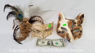 Lot #0259: Venetian Fox Mask & Mask Adorned w/Feathers
