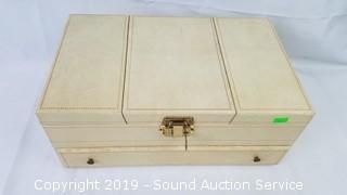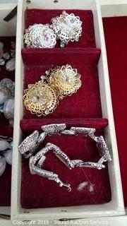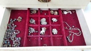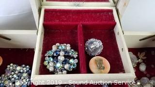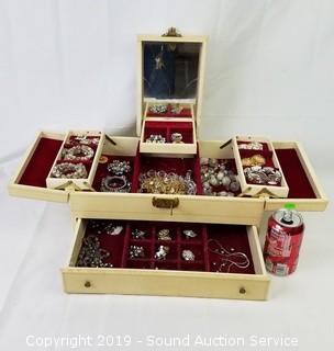 Lot #0045: Vtg. Jewelry Box Loaded w/Costume Jewelry