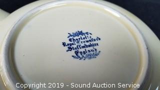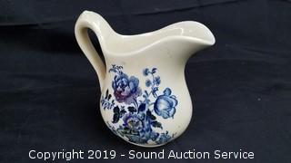 Marked "Charlotte Royal Crownford Staffordshire England". Pitcher is 5.5" H. Basin is 8.5" diameter.