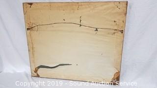 Solid wood frame. Approx. 35" x 29". Set to hang horizontally.