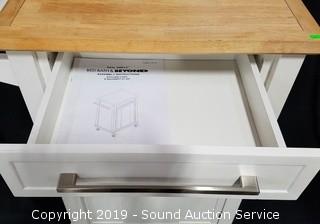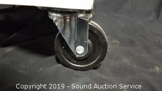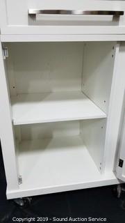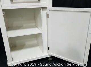 Drawer, lower cabinet, locking casters, side rails for hanging. Approx. 36.5" H, 24" x 18".
