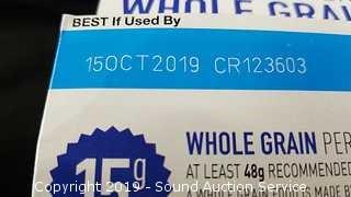 Boxes were crushed but the bags inside are still sealed. Best by October 15, 2019.