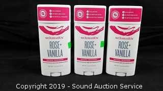 Lot #0217: 3pk Schmidt's Rose+Vanilla Natural Deodorant