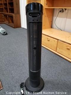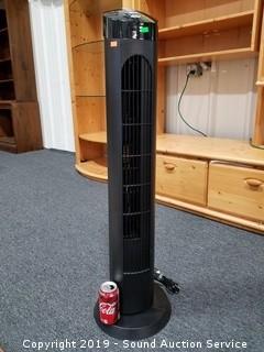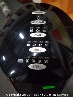 No packaging. 4 speeds, ultra quiet, oscillation, 15 hour timer, automatic shut off. Does not come with a remote. There's a small hole on the back.