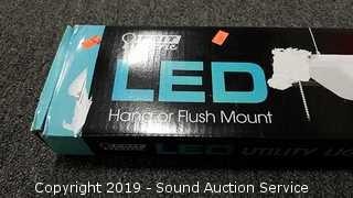 Has been used, hang or flush mount, uses only 52w, 4000 lumens, 4k color, motion sensor, comes in original box.
