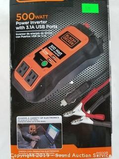 Lot #0179: Black & Decker 500W Power Inverter w/USB Ports