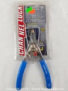 Pliers are 8" retaining ring pliers.